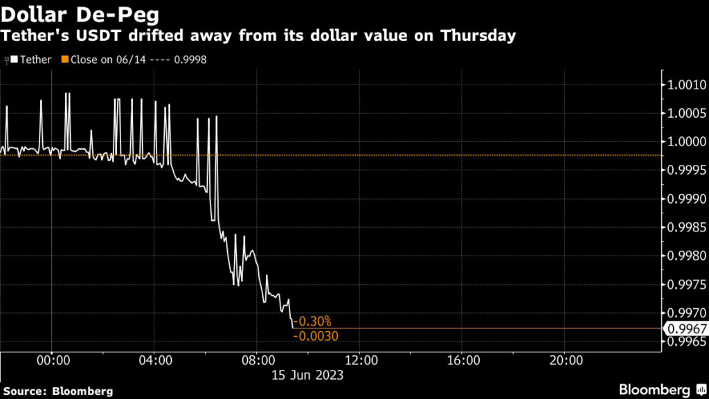 Tether’s USDT, the world’s largest stablecoin, deviated slightly from its peg to the US dollar.