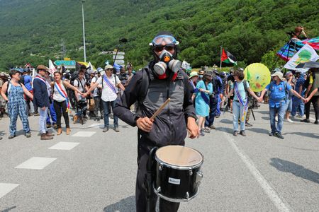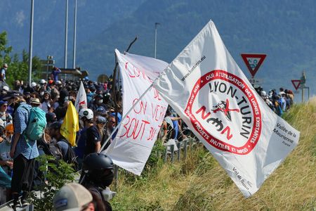 PARIS (Reuters) -Twelve police were wounded on Saturday in clashes with demonstrators in France’s Savoie department where a protest against a high speed rail project in the Alps turned violent, authorities said.