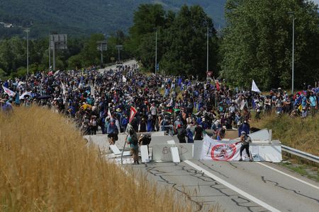 Some 2,000 protesters, including a roughly 300-strong dark-clad hardcore, were in the Maurienne Valley objecting to construction of a rail link including a tunnel between Lyon and the Italian city of Turin.