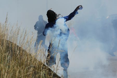 They threw rocks at riot police, who responded with tear gas, and one demonstrator was wounded, local prefect Francois Ravier told a news conference.