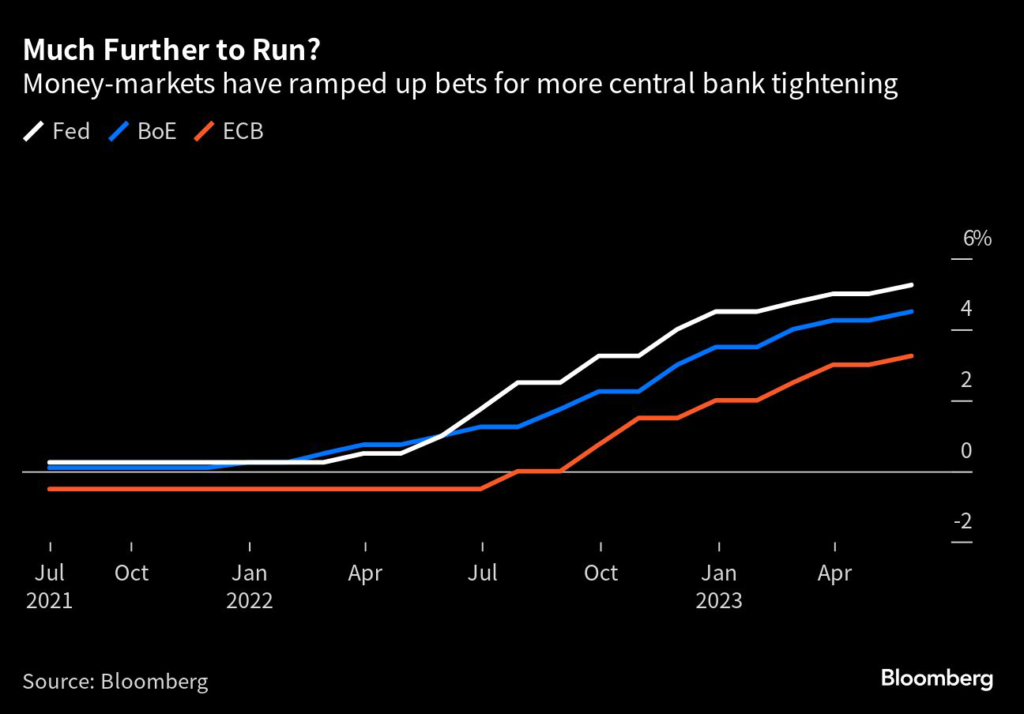 (Bloomberg) — Central banks in the US and Europe are signaling further interest rate increases but Mark Dowding, chief investment officer at RBC Bluebay Asset Management, isn’t buying it.