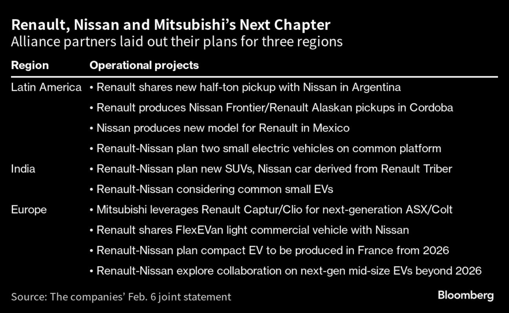 Separate common projects that Renault, Nissan and fellow alliance partner Mitsubishi Motors Corp.
