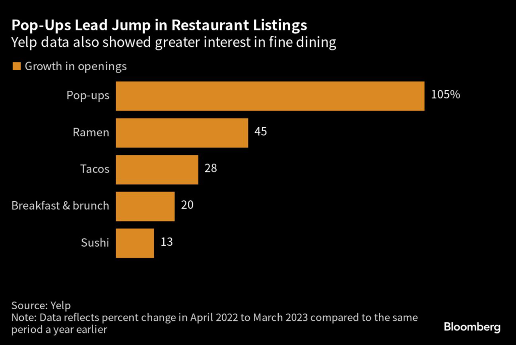 The growth in restaurant openings — which can be added by either the business itself or Yelp users — was led by pop-up concepts, which are fleeting in nature and feature experimental menus, according to the report.