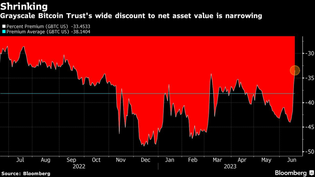 The trust’s discount to net asset value has narrowed sharply on speculation BlackRock’s step could end up bolstering Grayscale’s case.