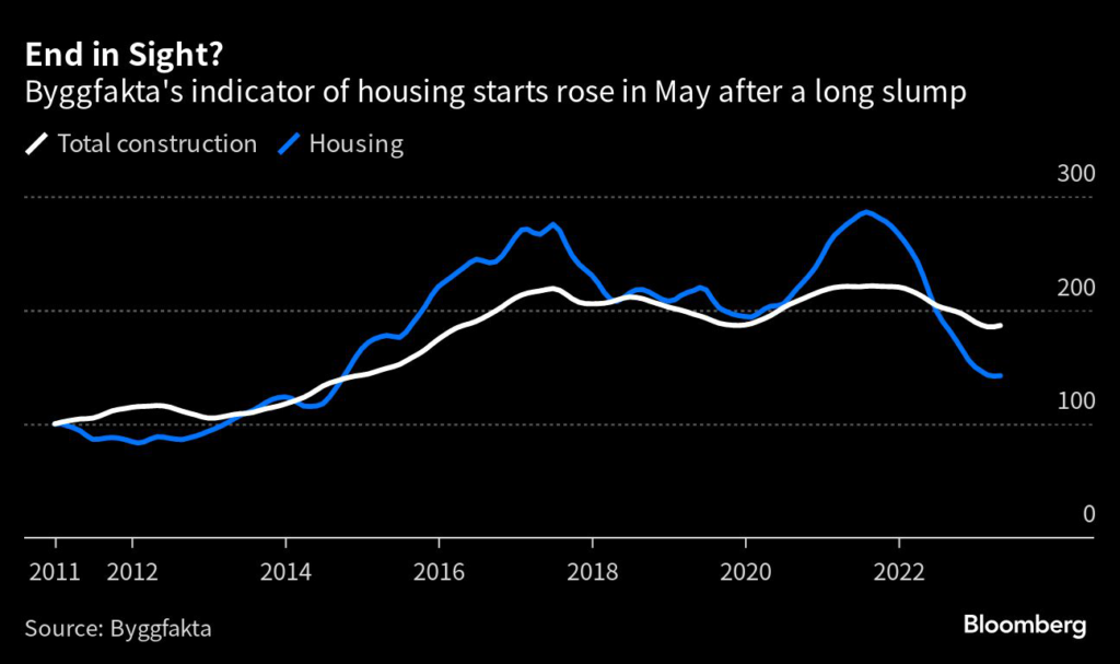 (Bloomberg) — An indicator of housing-construction activity in Sweden rose for the first time in almost two years, reflecting a glimmer of hope for an industry that has been battered by falling property prices.