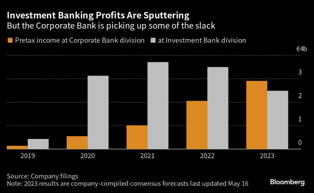 This means that revenue at the investment banking division, which has been Deutsche Bank’s biggest profit engine by far for the past few years, is set to decline.