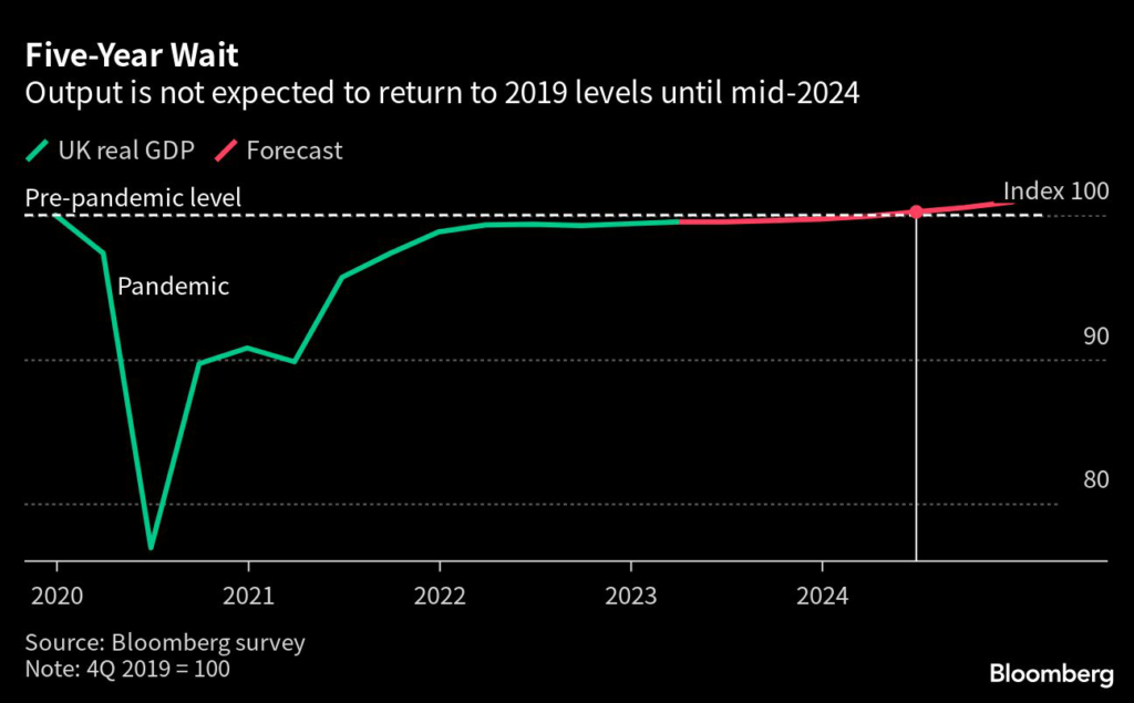 The risk for Sunak is not only that he fails to deliver on his core inflation pledge, but that the Bank of England’s efforts to tame price growth tip the UK into a recession just as people prepare to vote.