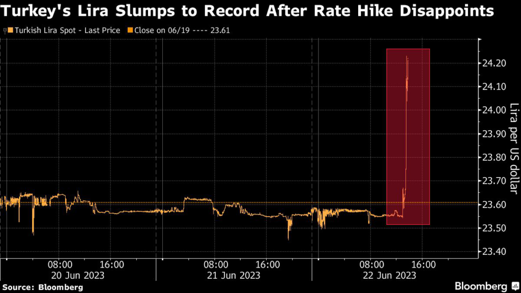 (Bloomberg) — Turkey’s central bank delivered a significantly smaller interest-rate increase than anticipated, as policymakers embark on what they said will be a gradual transition from an era of ultra-cheap money.