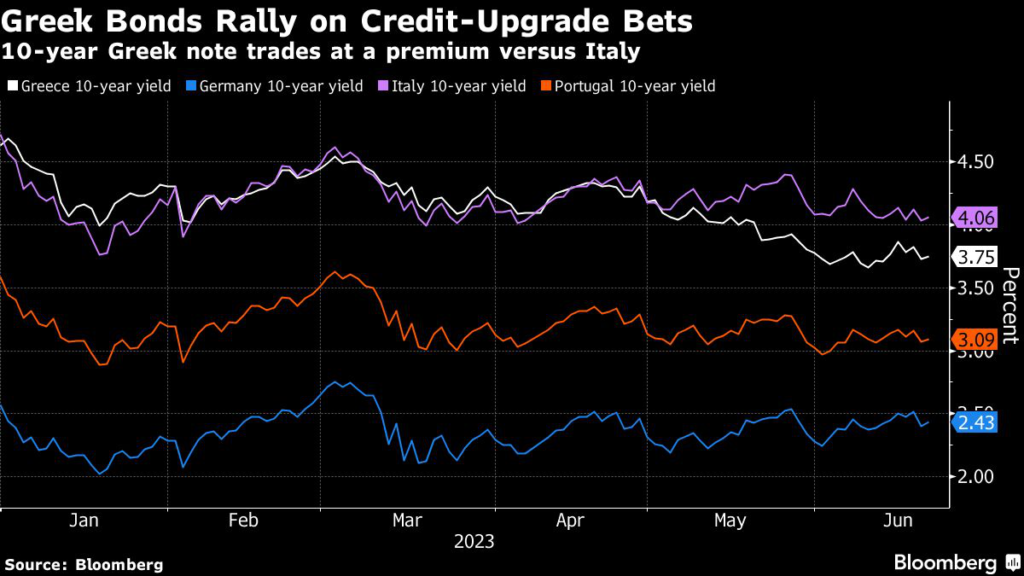 While debt may have risen as an absolute number, it has fallen significantly as a percentage of gross domestic product and is seen dropping further. Greek bonds are trading better than those of other euro-area members who are already part of the investment grade group.