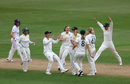 NOTTINGHAM, England (Reuters) – England were reeling at 116-5 at stumps on day four of the women’s Ashes test on Sunday chasing a target of 268, giving Australia the upper hand going into the final day of the one-off match at Trent Bridge.