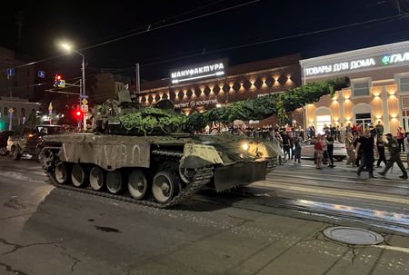 ROSTOV-ON-DON/VORONEZH, Russia (Reuters) -Heavily armed Russian mercenaries withdrew from the southern Russian city of Rostov under a deal that halted their rapid advance on Moscow but raised questions on Sunday about President Vladimir Putin’s grip on power.