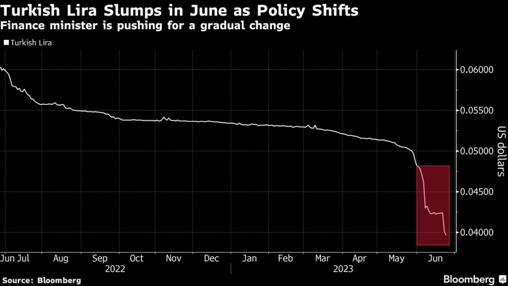 The Turkish lira has depreciated by nearly 18% against the dollar this month, with the slide extending after Simsek emphasized his backing for a gradual shift in economic policies.