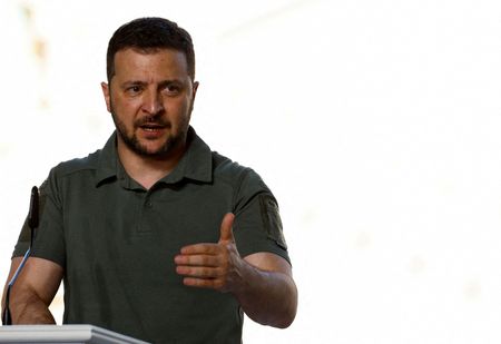 KYIV (Reuters) – Ukrainian President Volodymyr Zelenskiy said he discussed the weekend’s turmoil in Russia in phone calls with the leaders of the United States, Canada and Poland on Sunday, and that the “weakness” of Kremlin leader Vladimir Putin had been “exposed”.