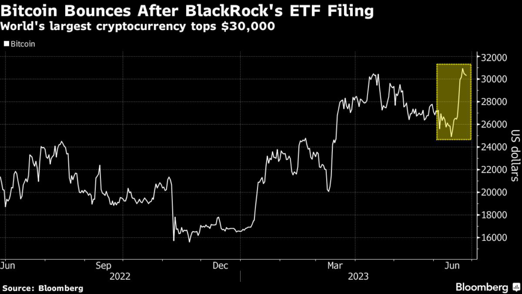 “21Shares, ARK and Cboe are first in line because their next SEC decision date is 8/13/23 and we don’t yet have a date for the other 19b-4 applications like the one from BlackRock,” said Bloomberg Intelligence ETF analyst James Seyffart.