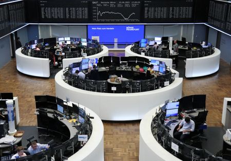 (Reuters) -European shares inched lower on Monday, led by healthcare, while defence stocks fell after an aborted weekend mutiny in Russia.
