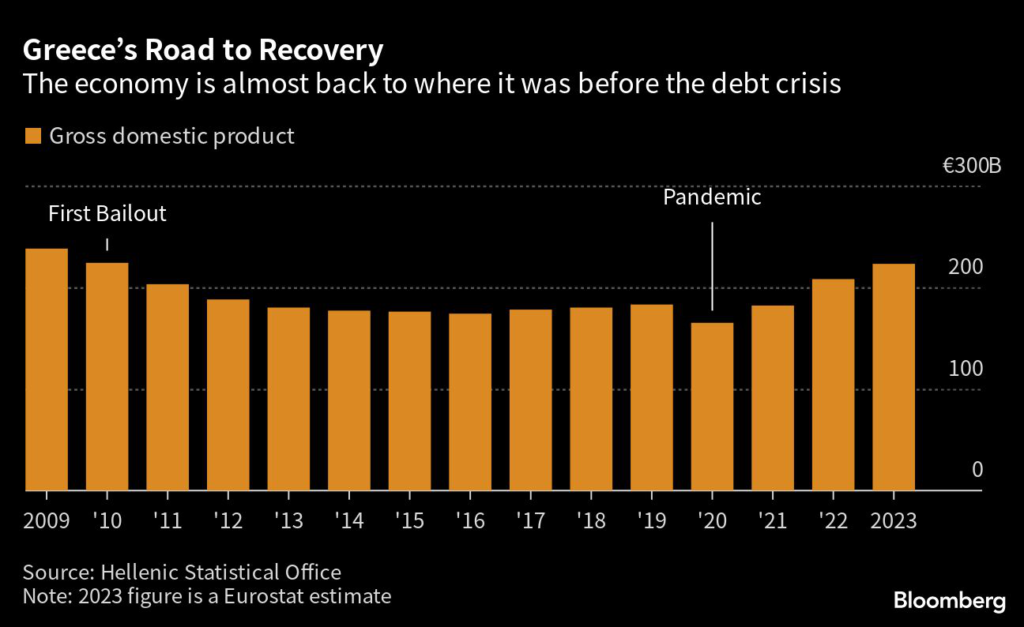 Mitsotakis ran on Greece’s economic transformation, which has seen gross domestic product recover to just about where it was when the country lost its ability to repay its debt in 2010.