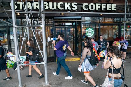 (Reuters) – Workers at dozens of U.S. Starbucks locations held strikes on Sunday to express their outrage over accusations by the baristas’ union that managers at several U.S.