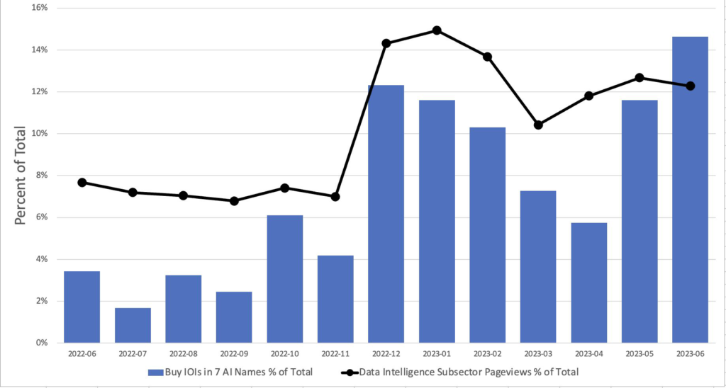 has seen an increase in demand for AI firms on its platform over the past year, with Microsoft Corp.’s investment in OpenAI in January and a round of funding for Anthropic among the key drivers. In June, buying interest in a group of seven AI companies, including OpenAI, reached the highest level over the period, data provided by the firm show.