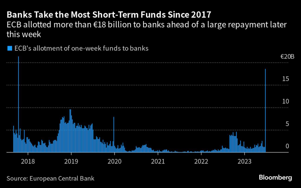 About 75 institutions bid for more than €18.5 billion ($20.3 billion) at the ECB’s weekly Main Refinancing Operation, the largest amount since 2017.