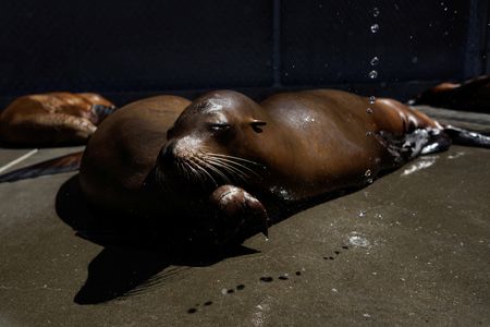 LOS ANGELES (Reuters) – Rescued from the beach, a sick sea lion and her newborn pup are now on the mend with dozens of others at a marine mammal care center, part of effort by California wildlife experts responding to a sudden surge in animals falling ill to a neurotoxin.