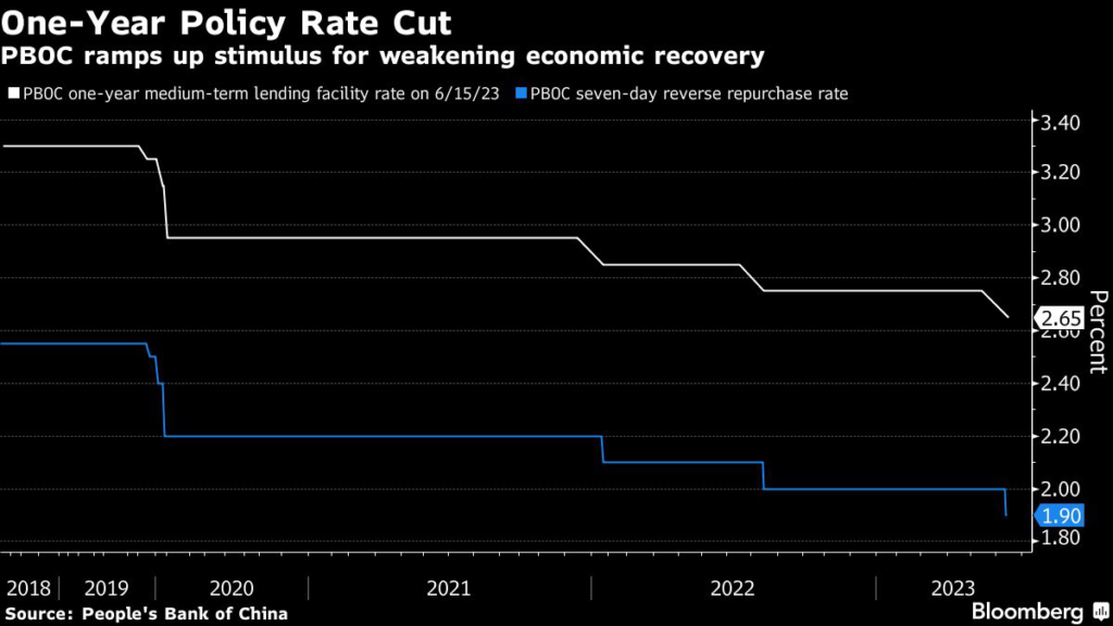 (Bloomberg) — China is expected to cut interest rates again this year and ramp up fiscal stimulus to spur a faltering economy, according to economists surveyed by Bloomberg.