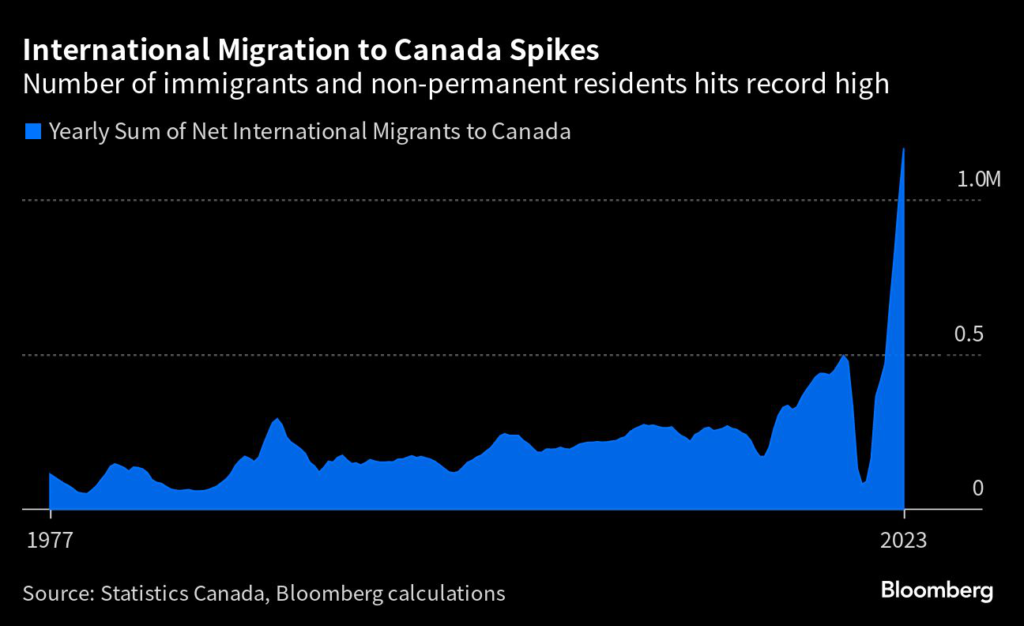 Rapid population growth has added labor supply to an economy that’s in need of more workers, but it also boosts consumption and housing demand at a time the Bank of Canada is trying to tamp down growth and tame inflation.
