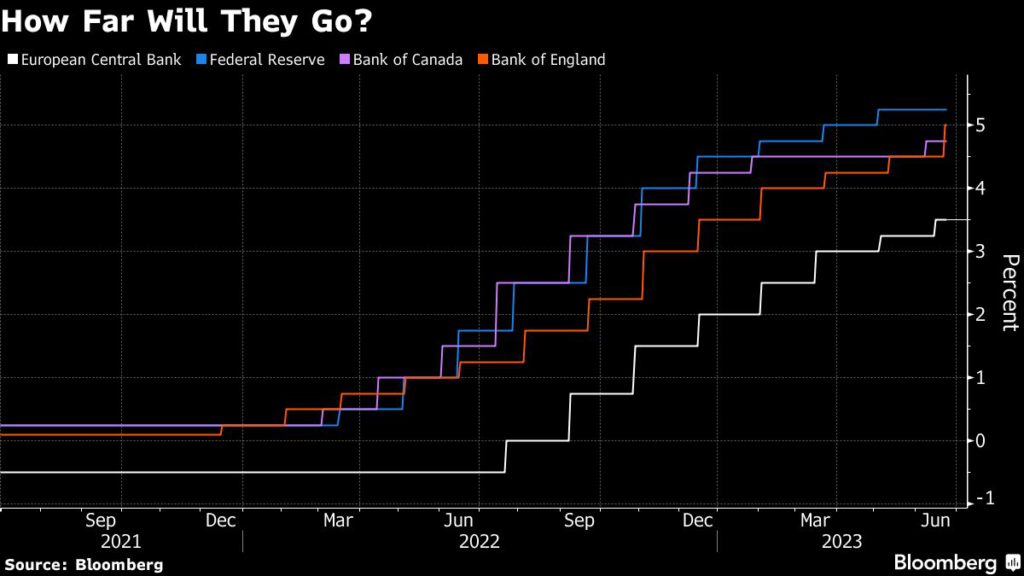 (Bloomberg) — The global economy and inflation have so far proved surprisingly resilient to a barrage of interest-rate increases, prompting top central bankers to promise more of the same on Wednesday.