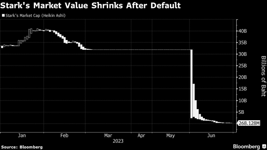 Stark has seen its shares sink by 99% this month after defaulting on some of its 30 billion baht ($842 million) in liabilities.