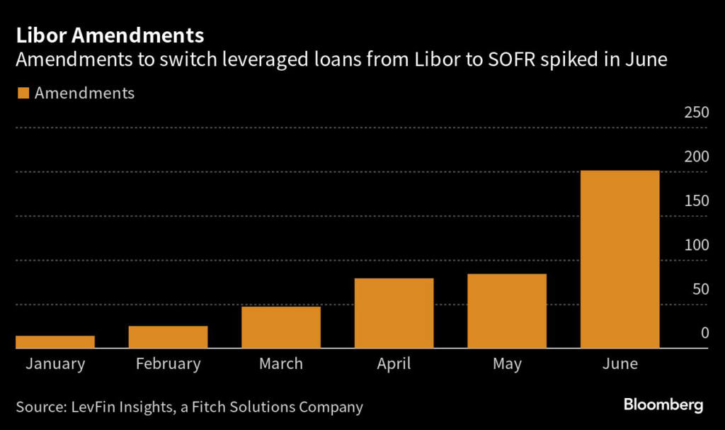 Amendments to ditch Libor have increased from 14 in January to 84 in May, and more than 200 in June, according to data from LevFin Insights, a unit of Fitch Solutions.