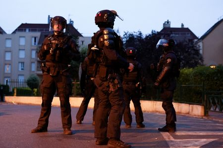 PARIS (Reuters) – Protesters shot fireworks at police and set cars ablaze in the working class Paris suburb of Nanterre on Wednesday, in a second night of unrest following the fatal shooting of a 17-year-old boy during a traffic stop there.