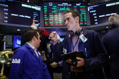 NEW YORK (Reuters) – The S&P 500 advanced on Thursday and benchmark Treasury yields hit their highest level since early March as robust economic data helped ease recession fears but increased the odds of the Fed keeping its restrictive policy in place for longer than expected.