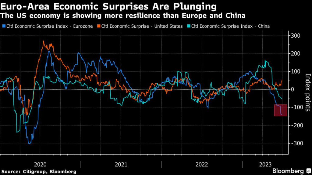 “In contrast, US investors have started selling European equities for the first time this year, with the weakening in activity data prompting broader outflows from the region.”