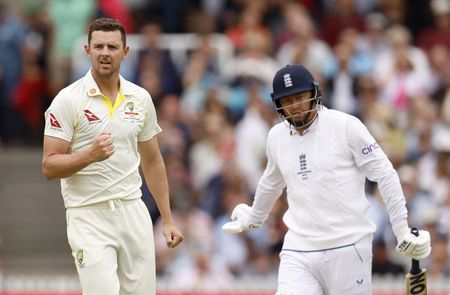 Jonny Bairstow (16) chipped a simple catch off Josh Hazlewood to Cummins at mid-on, and Stuart Broad, Ollie Robinson and Josh Tongue all fell cheaply, with even part-time spinner Travis Head bagging two wickets for Australia.