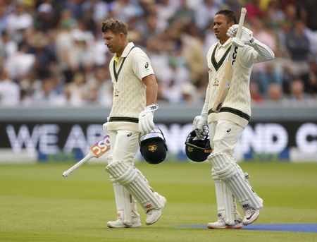 LONDON (Reuters) -Australia built a lead of 221 on the third day of the second test at Lord’s before rain stopped play on Friday, adding 130 to their first-innings score for the loss of two wickets after skittling out England’s tail end in the morning.