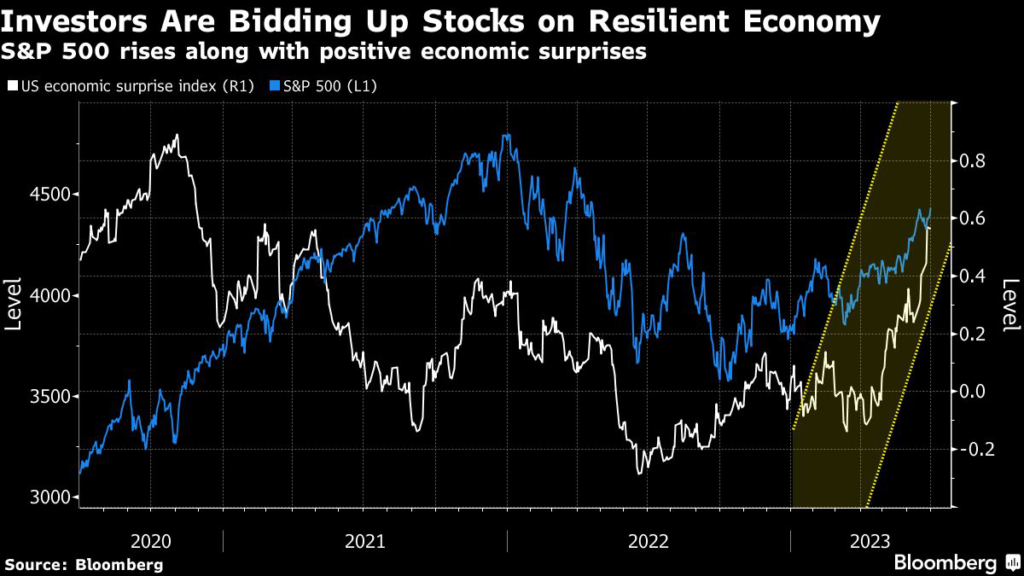 All told, a Bloomberg index tracking economic surprises has risen in all but two weeks since early April and reached the highest level in more than two years.