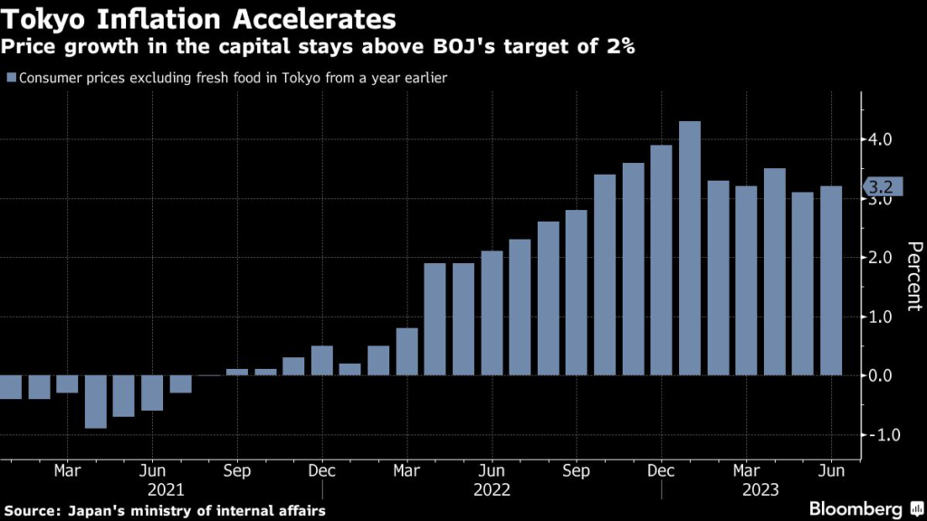 (Bloomberg) — Inflation in Tokyo re-accelerated for the second time in three months in June, an outcome that supports expectations the central bank will raise its inflation forecast next month.