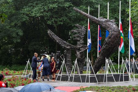 However “the times have changed and Keti Koti … the chains have truly been broken,” he said to cheers and applause of thousands of onlookers at the national slavery monument in Amsterdam’s Oosterpark.