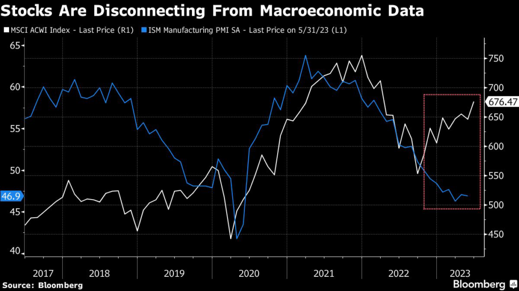 (Bloomberg) — The narrative propelling the global stock rally since mid-March goes like this: The US economy will hold up fine in the face of higher interest rates, and China’s stimulus efforts will help keep that nation’s post-pandemic recovery chugging along.