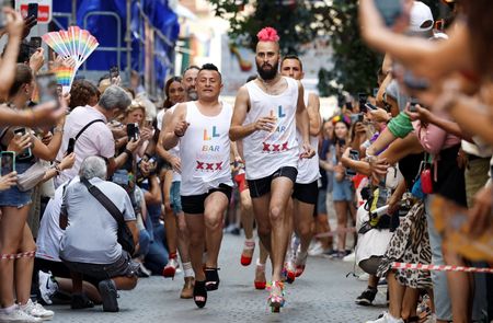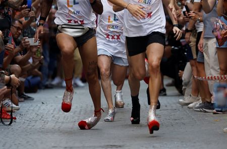 MADRID (Reuters) – Dozens of people sporting high heels, most of them men, raced down a cobbled street in the centre of the Spanish capital on Thursday as part of Madrid Pride, one of the world’s largest LGBT celebrations.