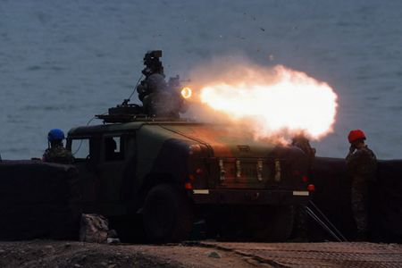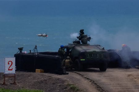 FANGSHAN, Taiwan (Reuters) – Taiwan’s military carried out live fire drills on its strategically-located southern coast on Monday, firing missiles from highly mobile armoured cars to destroy targets close to shore in a simulation of repelling invading forces.