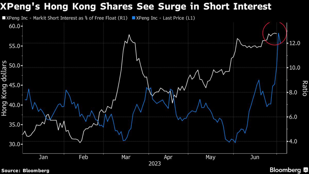 Short interest accounted for about 12% of XPeng’s shares available to trade in Hong Kong, according to IHS Markit data as of June 29.