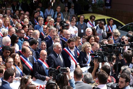PARIS (Reuters) -Defiant gatherings were held outside town halls across France on Monday following a wave of rioting triggered by the fatal police shooting of a teenager of north African descent.