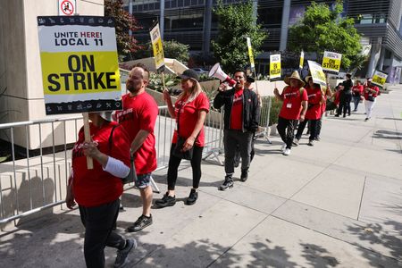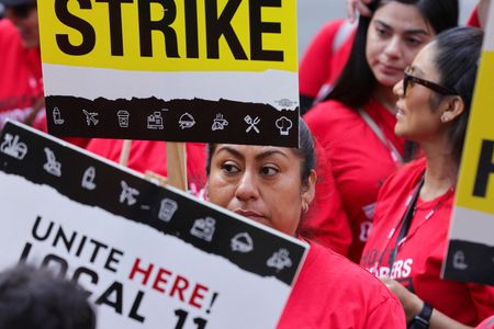 LOS ANGELES (Reuters) -Thousands of Los Angeles-area hotel workers went on strike on Sunday demanding pay hikes and improved benefits in a region where high housing costs make it difficult for low-wage earners to live close to where they hold jobs, union officials said.