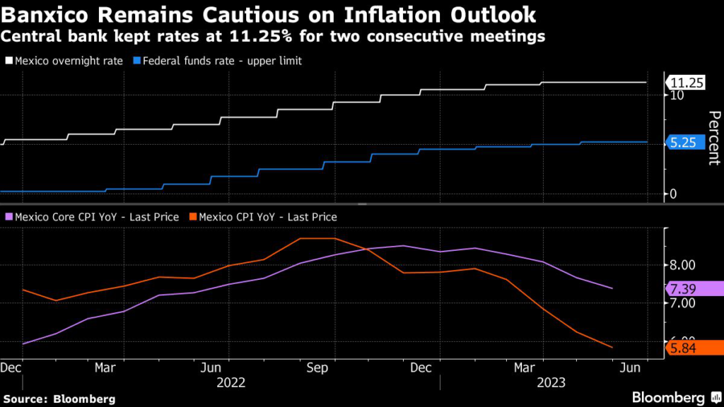 The central bank, known as Banxico, held the key rate steady at 11.25% at its June 22 meeting, during which board members expressed reservations about premature cuts in the face of an uncertain inflation outlook, according to minutes released Thursday.
