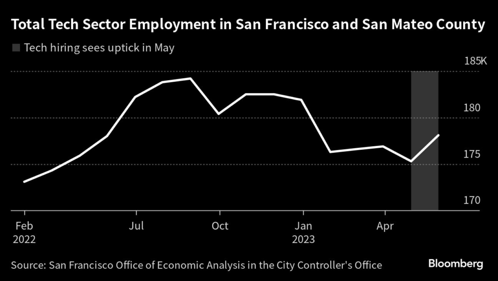 (Bloomberg) — After months of painful job cuts, companies in San Francisco’s tech sector stepped up hiring in May, spurred in part by an artificial intelligence boom, according to a new report.
