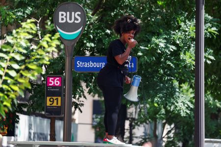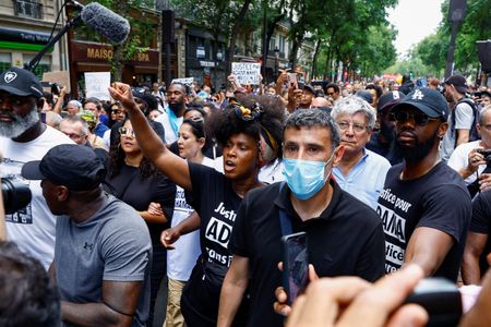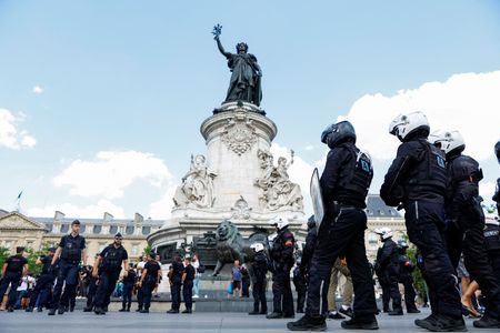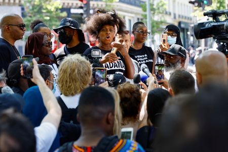 PARIS (Reuters) -Hundreds of protesters defied a ban on Saturday to march in central Paris against police violence, a week after riots sparked by the killing of a teenager in a Parisian suburb.