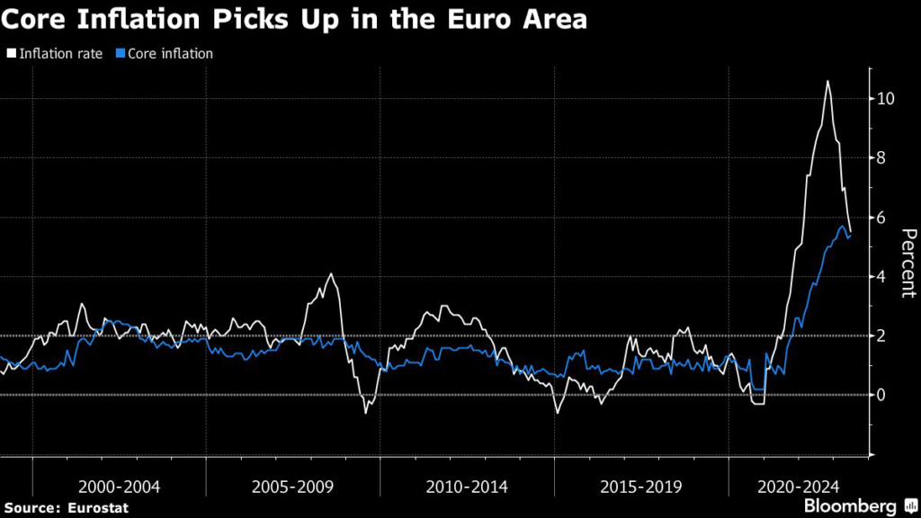 The remarks by one of the more dovish ECB officials highlights how the path of underlying price growth, which strips out volatile elements such as energy and food, is central to the debate on how far interest rates should still rise.