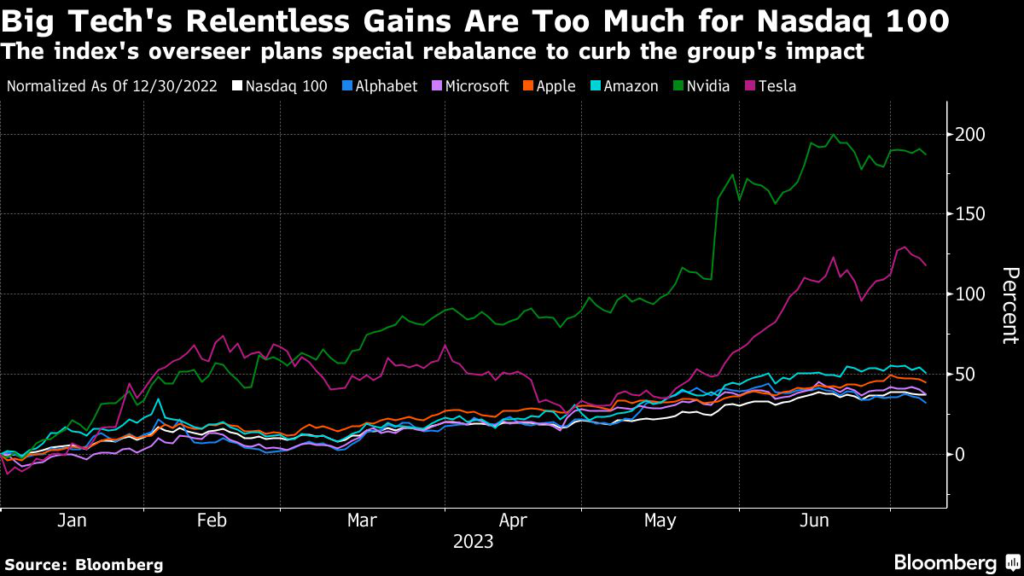 (Bloomberg) — America’s biggest tech companies have become too large even for the stock index tracking America’s biggest tech companies.