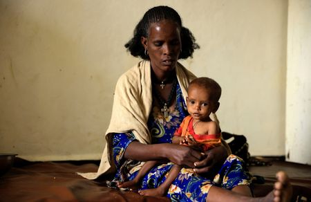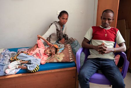 MEKELLE, Ethiopia (Reuters) – Curled up on a hospital bed in Ethiopia’s northern Tigray region, an emaciated little girl struggles to breathe, as her father softly strokes her gaunt face and her mother sits crying.