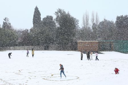 South of the city in Brackenhurst, a Reuters photographer saw children making snowballs and snow angels in a school’s grounds.